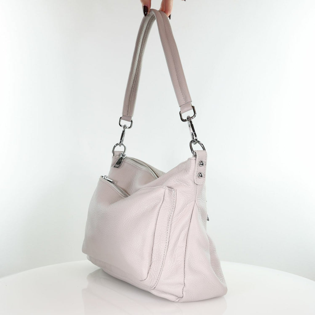 The main zippered compartment opens to reveal smart organisation: a secure internal pocket, a zippered divider, and a loose internal pocket. On the outside, two external zip pockets keep your essentials close and easy to reach.