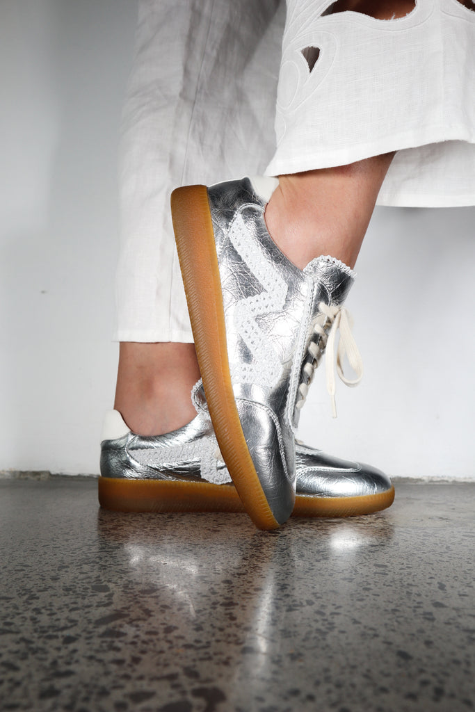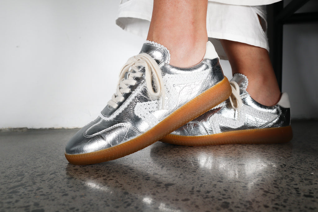 Introducing Magnum: Channeling the vibrant spirit of 00's street style, these sneakers seamlessly blend retro charm with sleek, modern design. The smooth leather and suede lace-up upper, combined with a gum-colored low-rise profile, offer a refined yet relaxed vibe, highlighted by the signature M side panel. Perfectly versatile, Magnum pairs effortlessly with wide-leg cropped jeans, slim skirts, denim, or linen for a fresh Spring/Summer look.