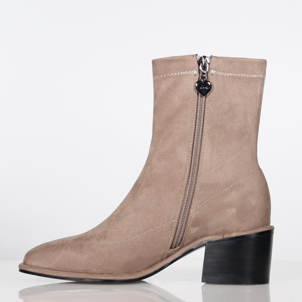 Introducing Sequoia: your Winter style essential. These boots exude sophistication with their trendy square toe and sleek form-fitting microsuede stretch leather design. Featuring an inner zipper, they effortlessly hug the ankle for a flattering silhouette, perfect for pairing with pants or skirts. Plus, the manageable block heel height ensures stability without compromising on style. Look oh so chic with all your winter ensembles with Sequoia.