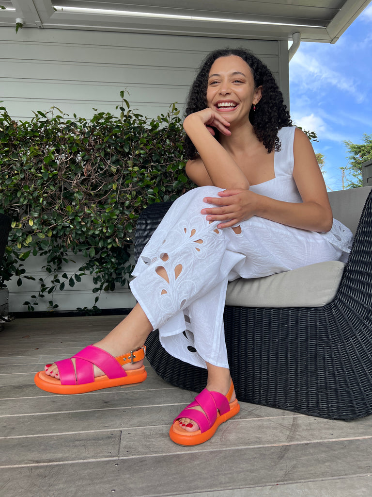 Heal is the newest addition to our Wellness range, designed to combine everyday comfort with modern style. Crafted in soft leather with feature stitching, the supportive upper holds the foot securely with wide straps across the front and a flattering criss-cross over the top. An adjustable buckle strap wraps around the heel for a personalised fit, while the rounded, tubular leather-covered sole adds a fashionable finish. Heal is the sandal that makes wellness look and feel chic.