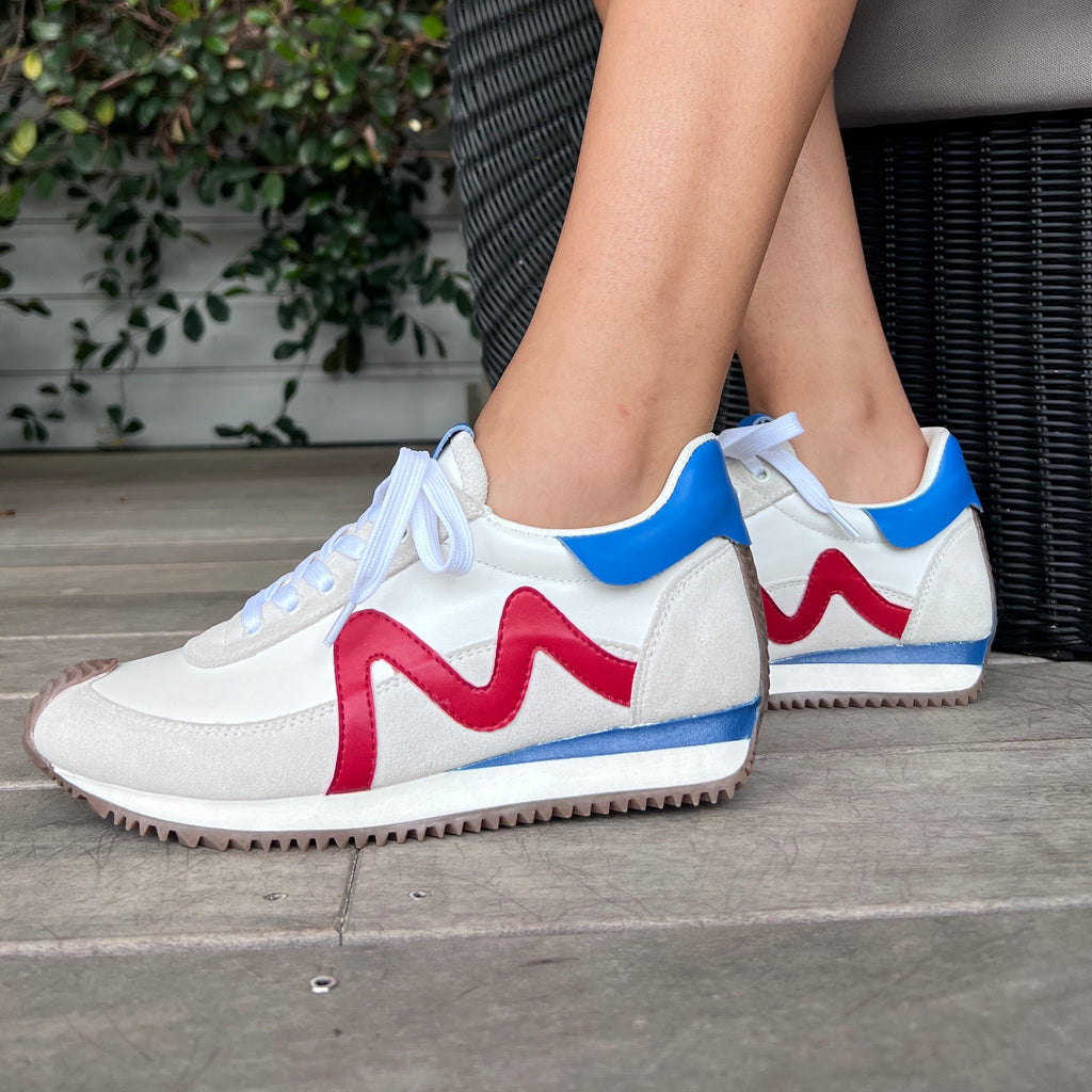 Marvel at these low-top sneakers, expertly crafted from luxurious suede and accented with fine leather trims, featuring a distinct "M" elegantly embellished along the side panels. The layered contrast rubber sole wraps around the front, creating a contemporary and dynamic appearance. Ideal for those who appreciate sporty yet chic styling with a touch of femininity, these sneakers are renowned for their effortless wearability, making them an exceptional choice for busy, on-the-go days.