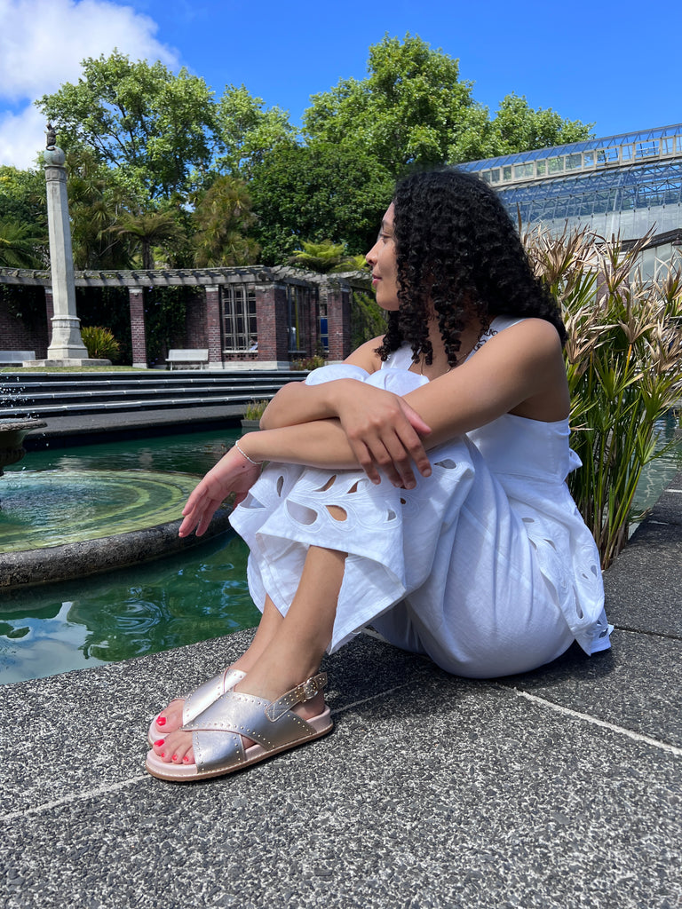 Thrive is your new everyday essential – a sandal that balances modern style with wellness comfort. Crafted in premium leather, the wide crossover straps are finished with subtle pin stud detailing, while the adjustable back strap ensures a personalised fit. Set on our cushioned Wellness footbed that gently supports your arch, heel, and toes, Thrive is designed for all-day comfort and stability. Available in gorgeous neutral leathers with pin stud colours that vary to complement each shade, it’s your go-to style that pairs effortlessly with everything from linen tailoring to relaxed weekend denim.